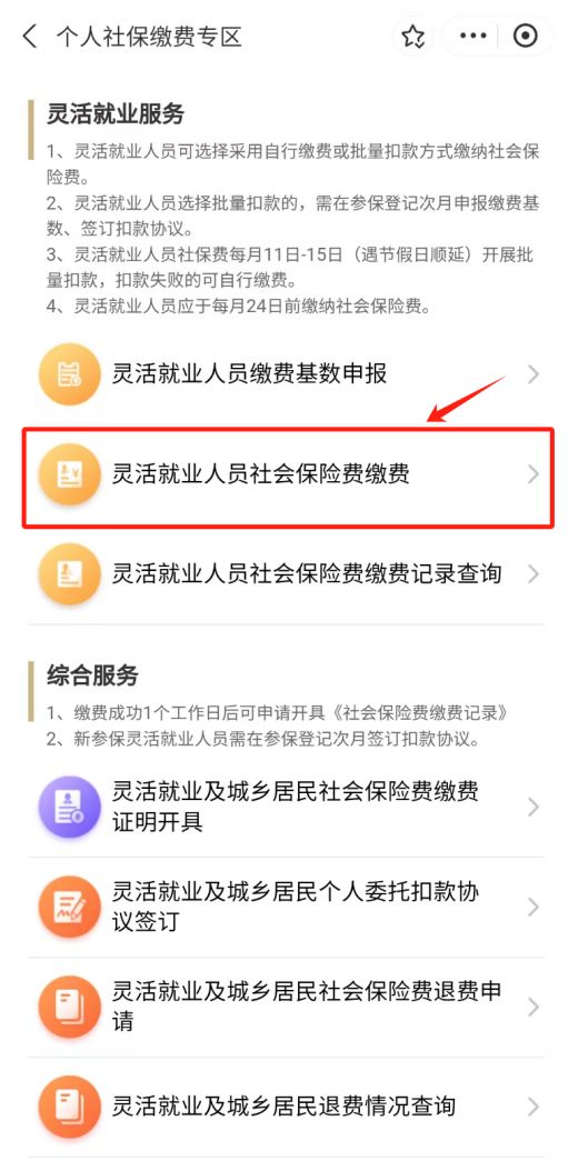 ▷灵活就业人员应于每月24日前完成缴费,可以选择批量扣款或自行缴费方式缴纳社保费。