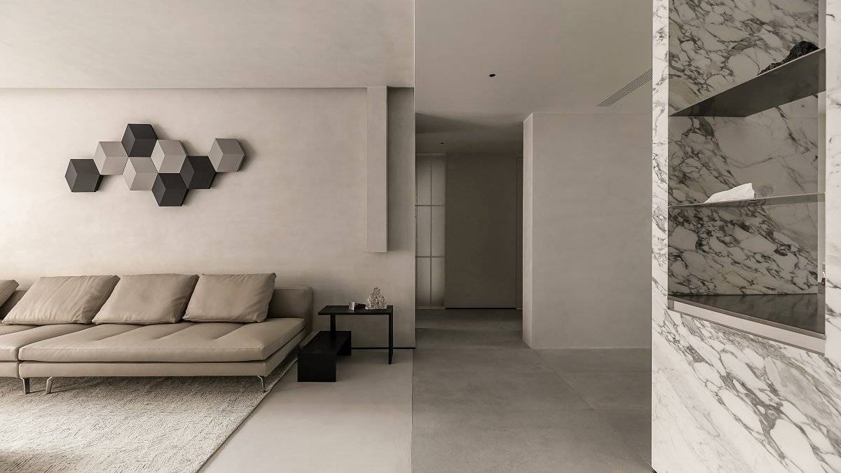 独家工艺:“微水泥无缝地坪工艺”,通过多层涂刮和精细打磨,实现墙面地面一体化效果,无缝且耐磨,其独家调配的涂层抗压强度比普通产品高40%。